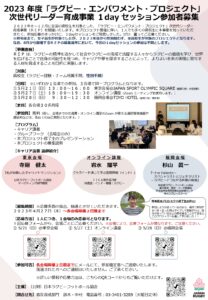 公益財団法人日本ラグビーフットボール協会は、「ラグビー・エンパワメント・プロジェクト」次世代リーダー育成事業の1dayセッション参加者募集について、下記のとおり、お知らせいたします。