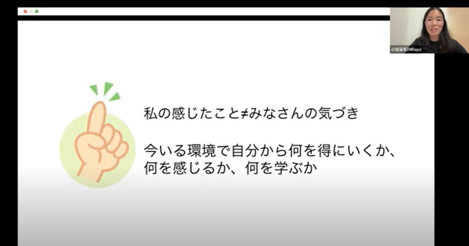 「英語で話されていることを聞き取るのに必死で、質問を考えることが出来ず時間が過ぎていってしまいました。ワールドカップ開催国のフランス出身の方で色々と話題はあったと思いますが、あまり質問が出来ませんでした。緊張してしまったのもあるかもしれませんが、英語が話せるようになって積極的に話したいと思いました」