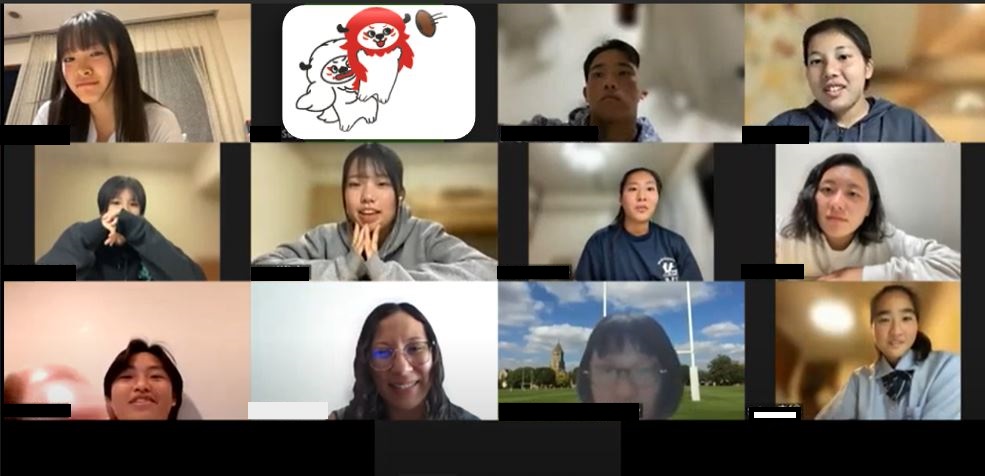 後半は、海外に住んでいる人とラグビーを通して交流を深めました。当初、二人予定されていた参加者は手違いで一人が参加できないアクシデント。2グループに分かれた参加者は、交代でフランス在住の女性、Citlali Cabreraさんと繋がりました。
