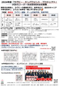 公益財団法人日本ラグビーフットボール協会(会長:土田 雅人、東京都港区)は、「ラグビー・エンパワメント・プロジェクト」次世代リーダー育成事業の参加者募集について、下記の通りお知らせいたします。