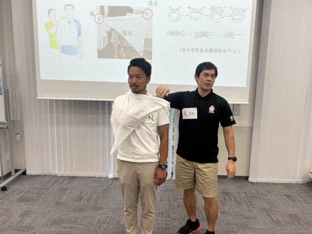 「テーピングやバンテージの仕方、また応急処置の仕方が聞けて、チームに持ち帰り全員に共有して、より安全に楽しくラグビーができそうだと思った。」