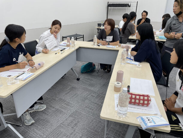 日本ラグビーフットボール協会メディカル委員会トレーナー部門大垣亮さんによる安全対策講座、U20日本代表チームマネージャー川崎桜子さんによる講演、そして「他のマネージャーに聞きたいこと」をテーマに、日々のマネージャー活動における悩みの共有と意見交換を実施しました。