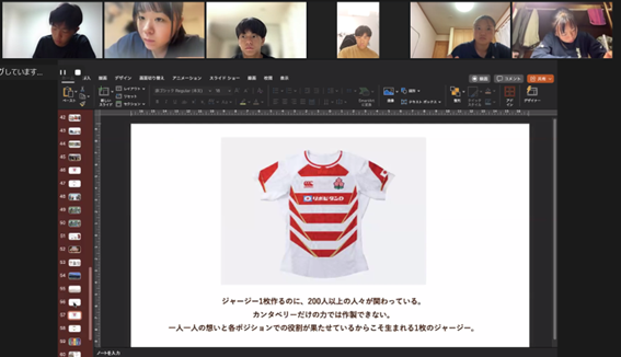 二人目の講師は、株式会社ゴールドウイン カンタベリー事業部デザイナーの森岡早紀さん。カンタベリーと言えば、選手やファンにとって、最も身近なラグビーのウエア。森岡さんは同社製品に関わる全てのマーケティングを担当しています。