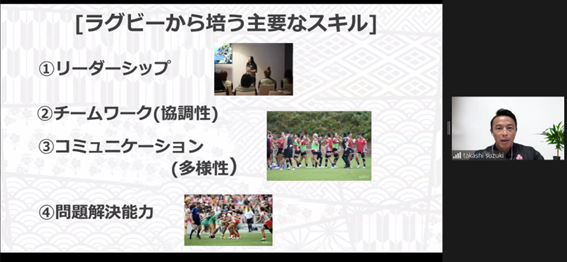 ・ 「ラグビーを通して、リーダーシップやチームワーク(協調性)、多様なコミュニケーション方法、問題解決能力などの社会生活に必要不可欠なスキルを身に付けられるということを改めて学ぶことが出来ました」