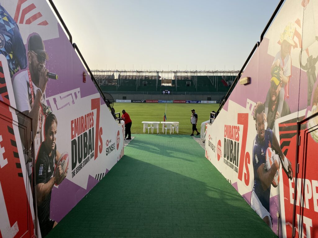 本大会の初戦となりました。試合会場のThe Sevens Stadiumはセブンズワールドシリーズでも使用されるスタジアムであり、メインスタジアム以外にも7面のピッチを要する大きなスポーツファシリティです。メインスタジアムは仮設シートを加えると4,1500人を収容することができるアジアでも大きな国際大会が開催されるラグビースタジアムの一つです。