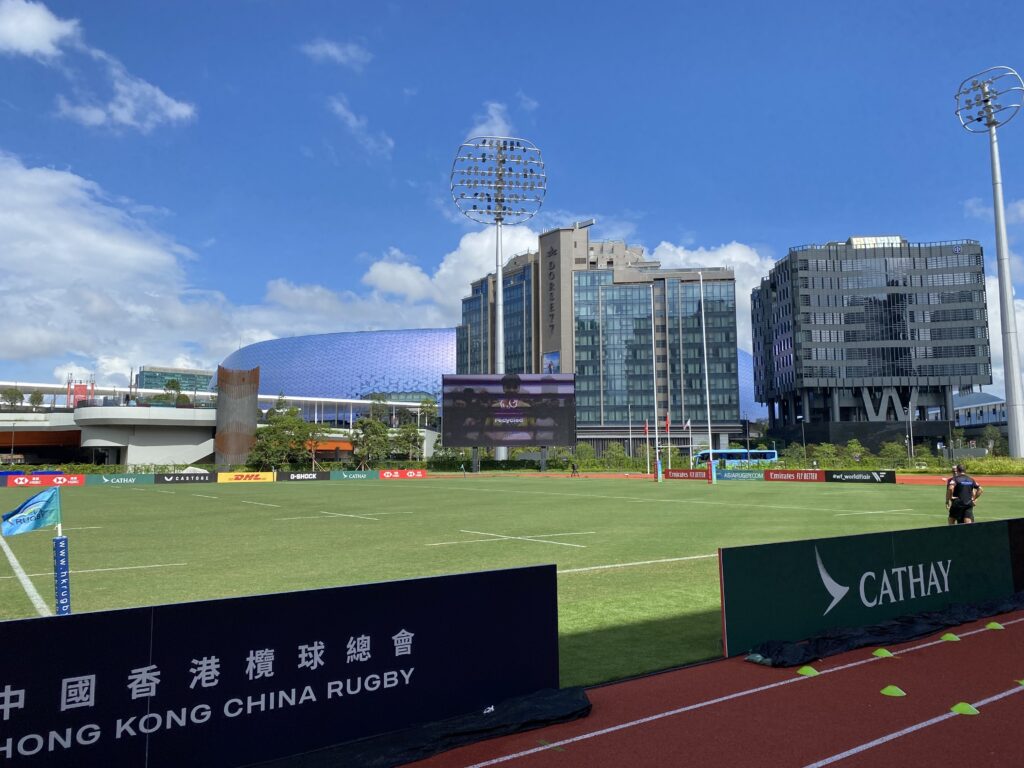 試合会場のKai Tak Sports Parkは総合スポーツ施設として、ショッピングモールやホテル、公園、スタジアムを整備し、香港のスポーツハブとしての役割を目指して2018年に着工し、今年2025年に完成した施設です。香港セブンズも今年からこのエリアにあるメインアリーナで開催されています。