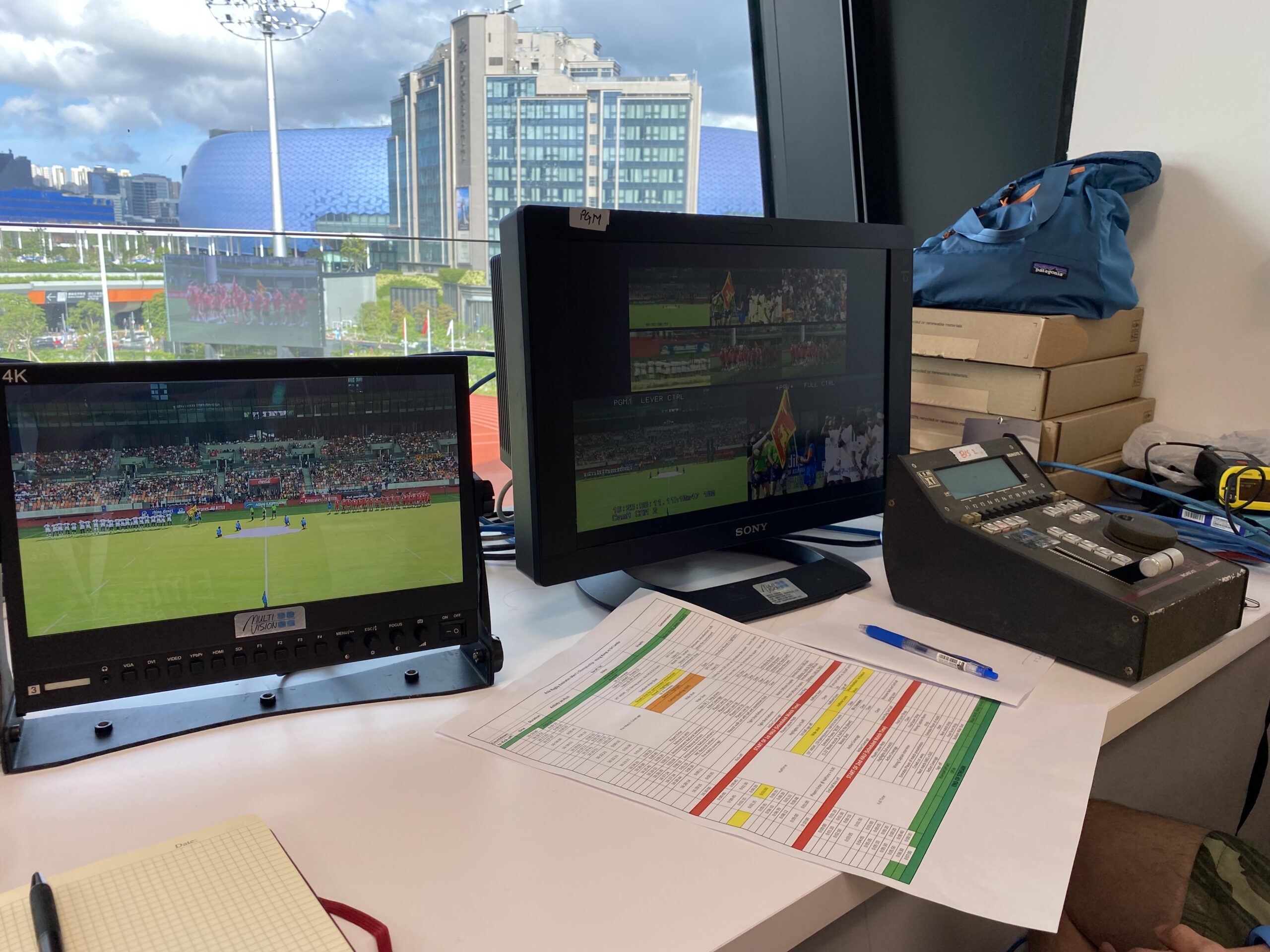 試合は香港代表が終始ゲームを支配し、大差でスリランカ代表に勝利しました。マッチオフィシャルは前週の試合とは異なり、UAE協会所属のレフリーやタイ協会所属のレフリーとマッチオフィシャルを組みました。1名以外は英語を母国語としないマッチオフィシャルでしたが、試合前のミーティングや試合中に良いコミュニケーションをとって、試合を進めることができました。TMOはマッチオフィシャルだけでなく、映像をコントロールするオペレーターとのコミュニケーションも英語が必須となります。アジア大会など国際大会ではレフリングスキルの高さもそうですが、コミュニケーションスキルも併せて求められます。