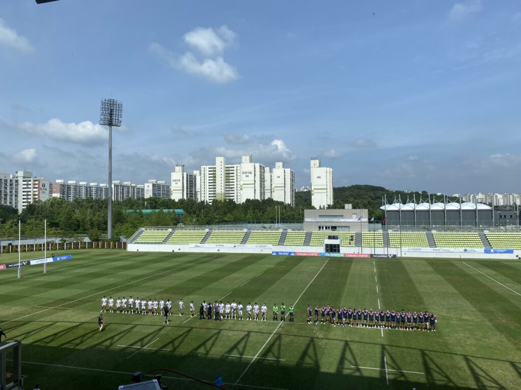 韓国代表は1勝1敗、香港代表は2勝で臨んだ最終戦は、ともに優勝の可能性がある大一番の試合でした。この試合の会場となったIncheon Namdong Asiad Rugby Fieldは、過去のラグビー国際大会でも使用され、日本代表も何度も試合をしたことのある馴染みのあるスタジアムです。日本でいう秩父宮ラグビー場のような存在です。