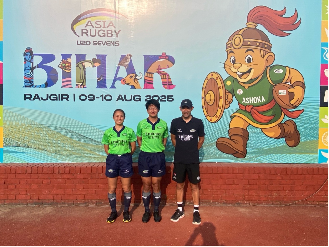 いつも、マッチオフィシャルへの応援ありがとうございます。2025年8月8日から9日にインドのビハール州で開催されたAsia Rugby Emirates U20s Men & Women 7sへ日本から、池田韻、稲西輝紀がレフリーとして、川原佑がPR (Performance Reviewer)として参加しましたので、稲西より報告させていただきます。