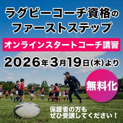 ラグビーの現場に関わるすべての人が共通の「安全意識」と「指導理念」を持つことが、プレーヤーが安心してラグビーを楽しみ、心身ともに健やかに成長できる環境づくりの礎となります。 本講座は「スタートコーチ」という名称ではありますが、決してコーチのみを対象としたものではありません。ラグビーを愛し、支えるすべての方に開かれた学びの機会として、立場を問わず幅広くご活用いただくことを切に願っております。