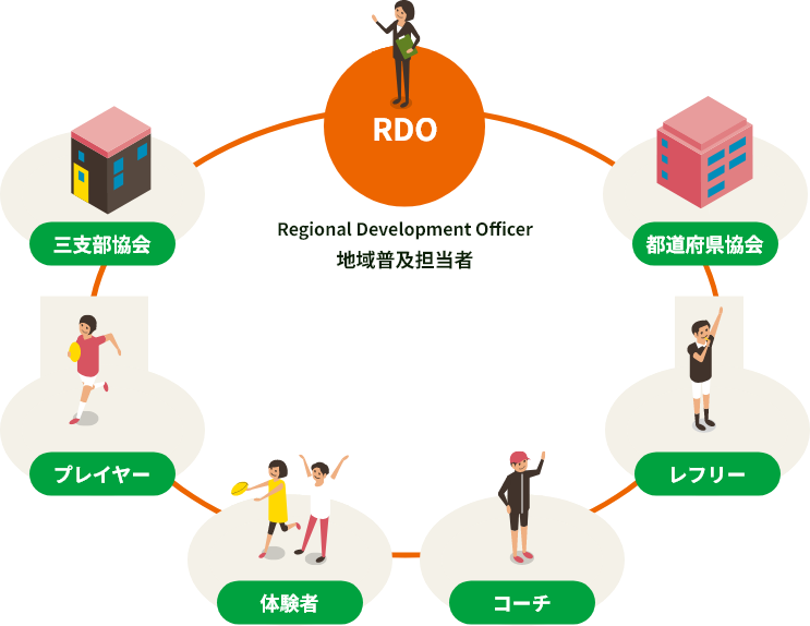 各地域にRDO(地域普及担当者)を配置し地域の皆さんと手を取り合っていくことで、それぞれの地域の形に合わせて”誰もがいつでもどこでもラグビーを楽しめる環境づくり”をサポートしていきます。